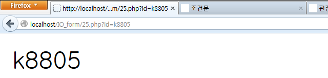 위의 코드를 브라우저로 열어보자. 이 때 파일명 뒤에 ?id=k8805이라고 입력한다. 예를들면 아래와 같다.