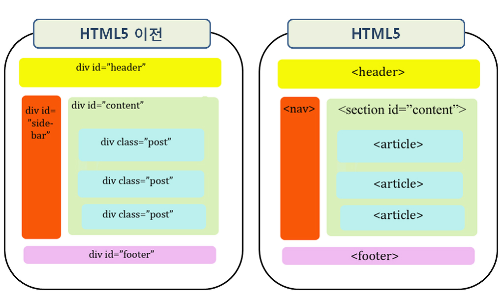 | <frame> | 프레임 | iframe과 CSS를 이용하거나 서버 사이트로 컨텐츠 결합 |