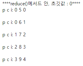 매개변수 출력으로 본 reduce 메소드의 흐름
